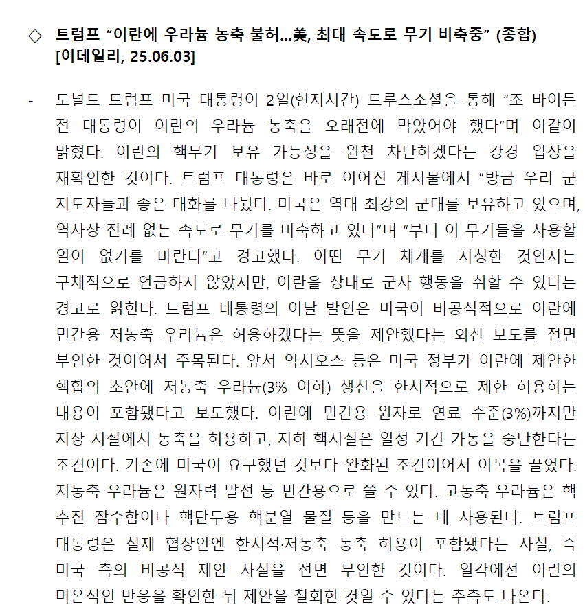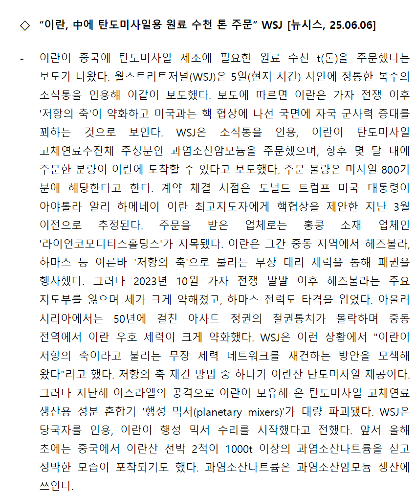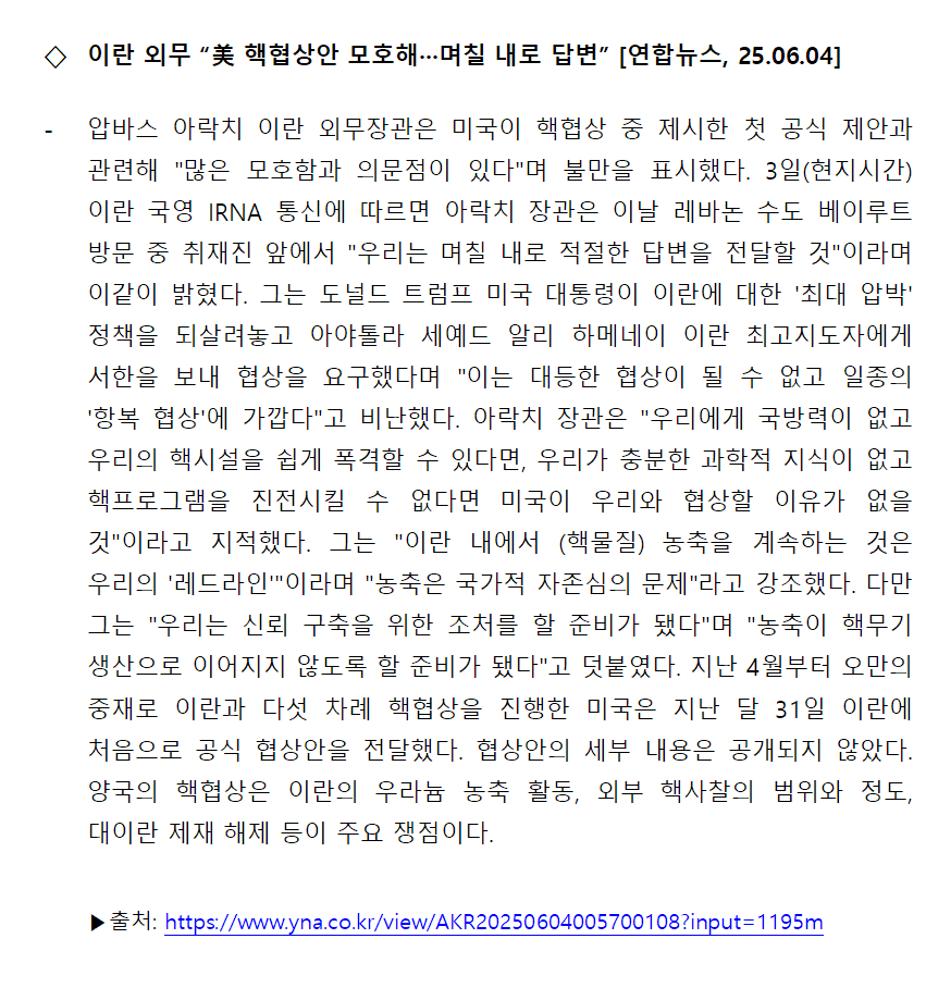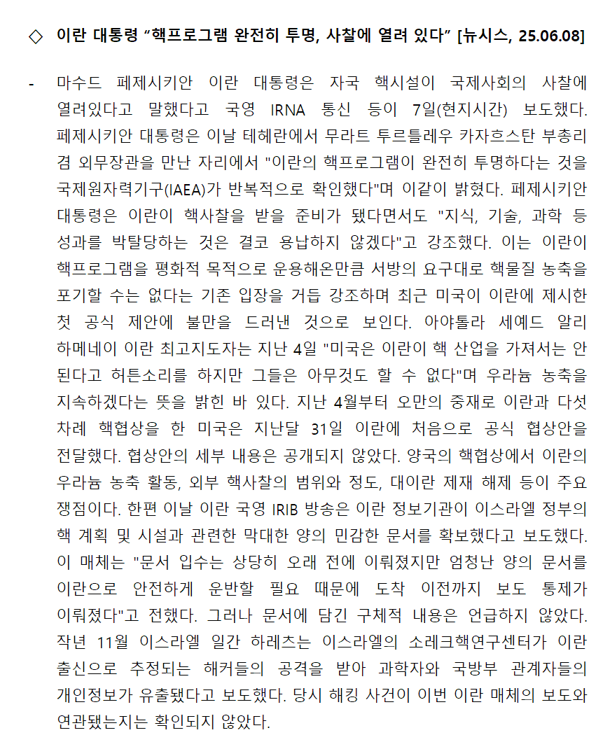 [내신] 한국-이란협회 뉴스레터 [25.06.02 ~ 25.06.08]