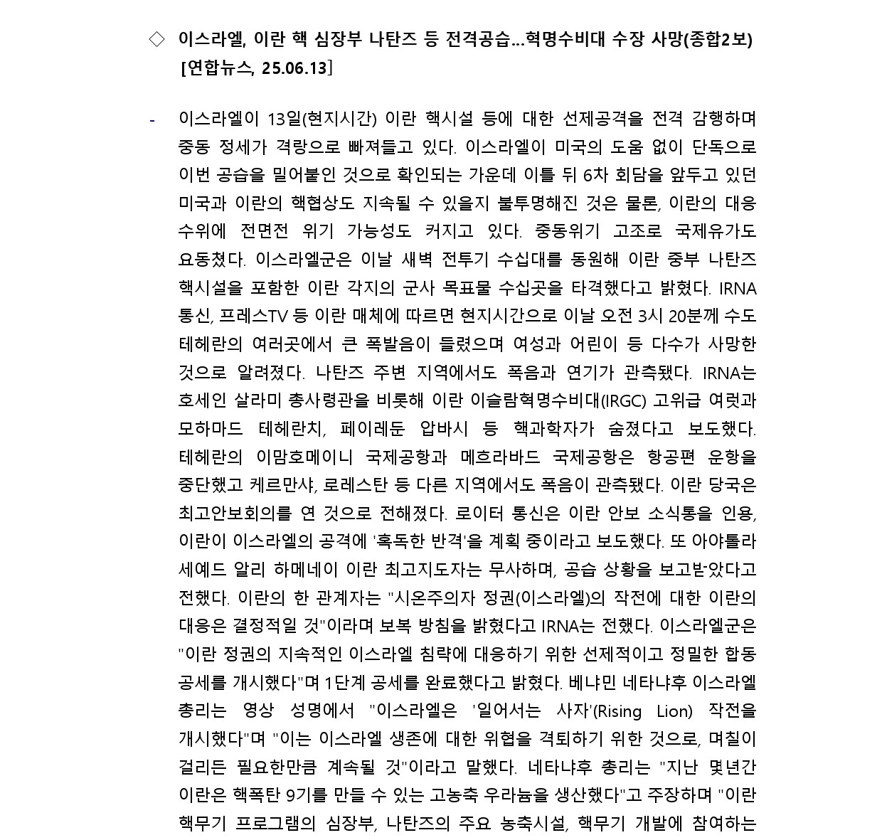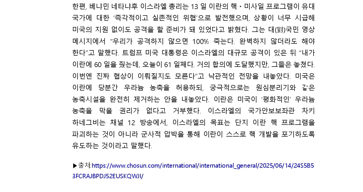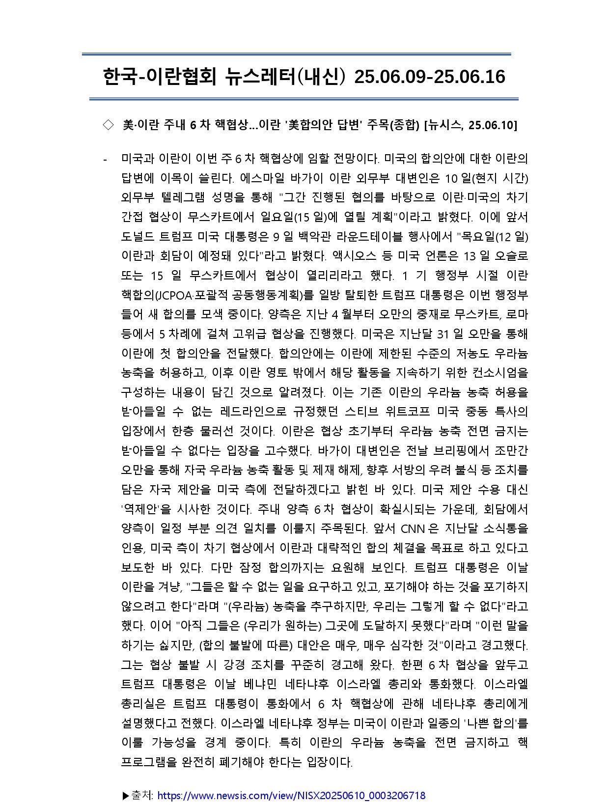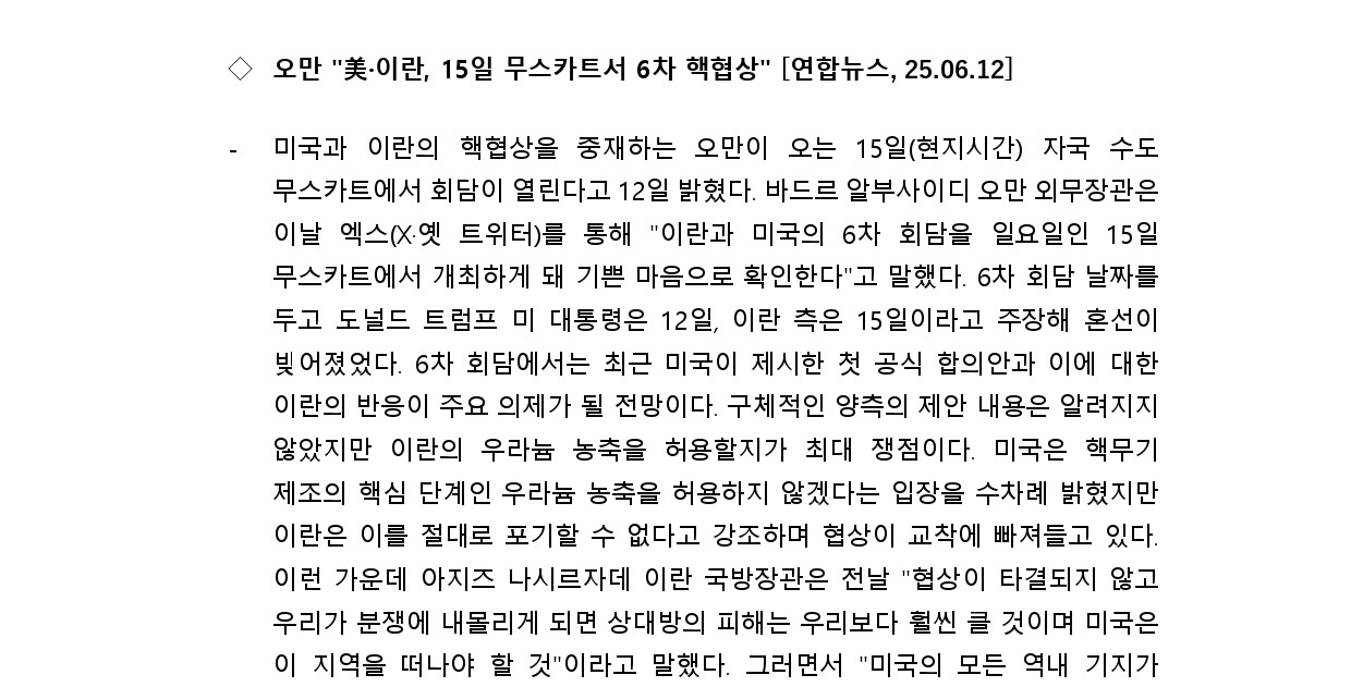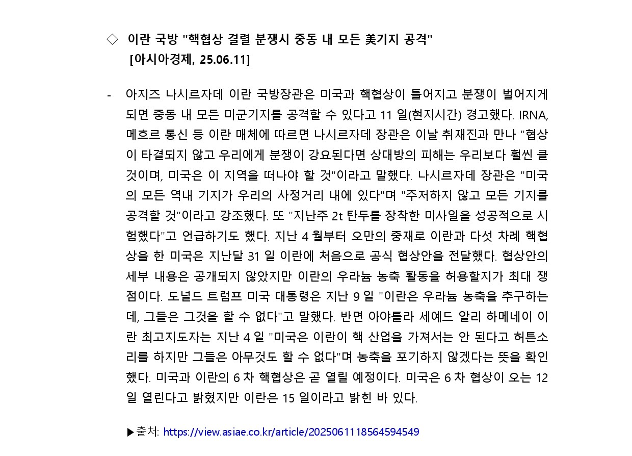[내신] 한국-이란협회 뉴스레터 [25.06.09 ~ 25.06.15]