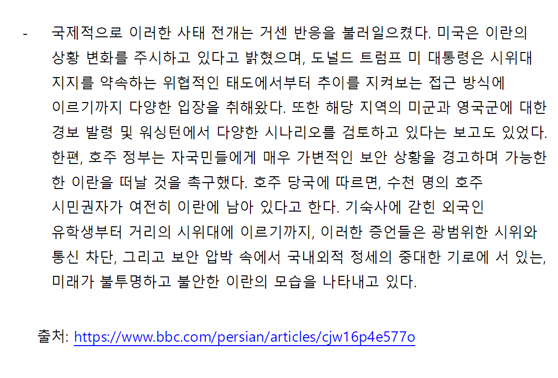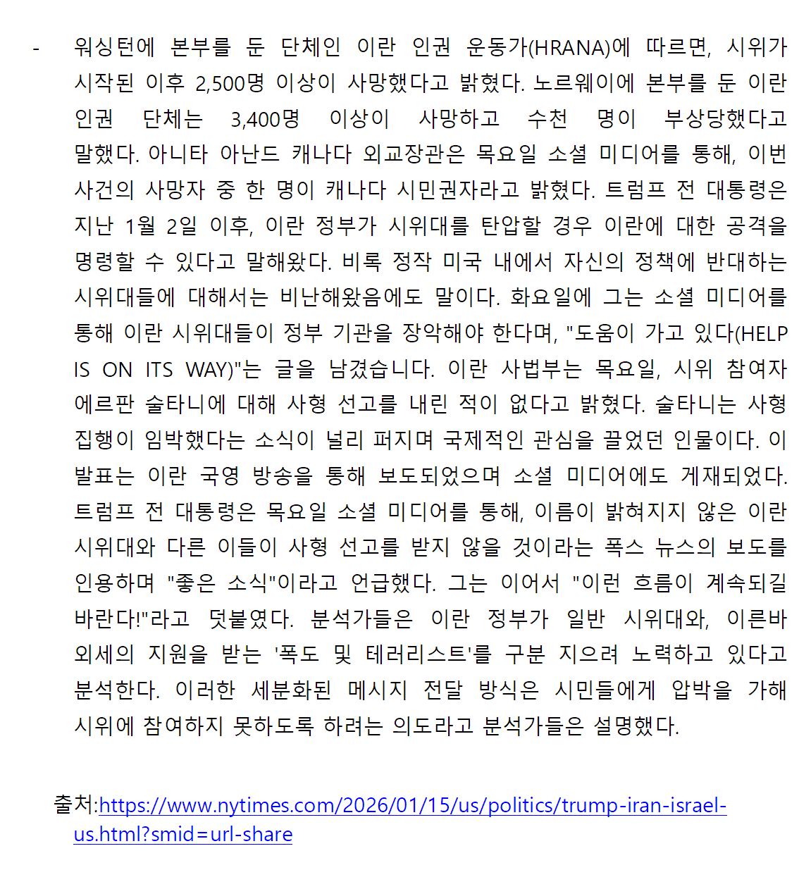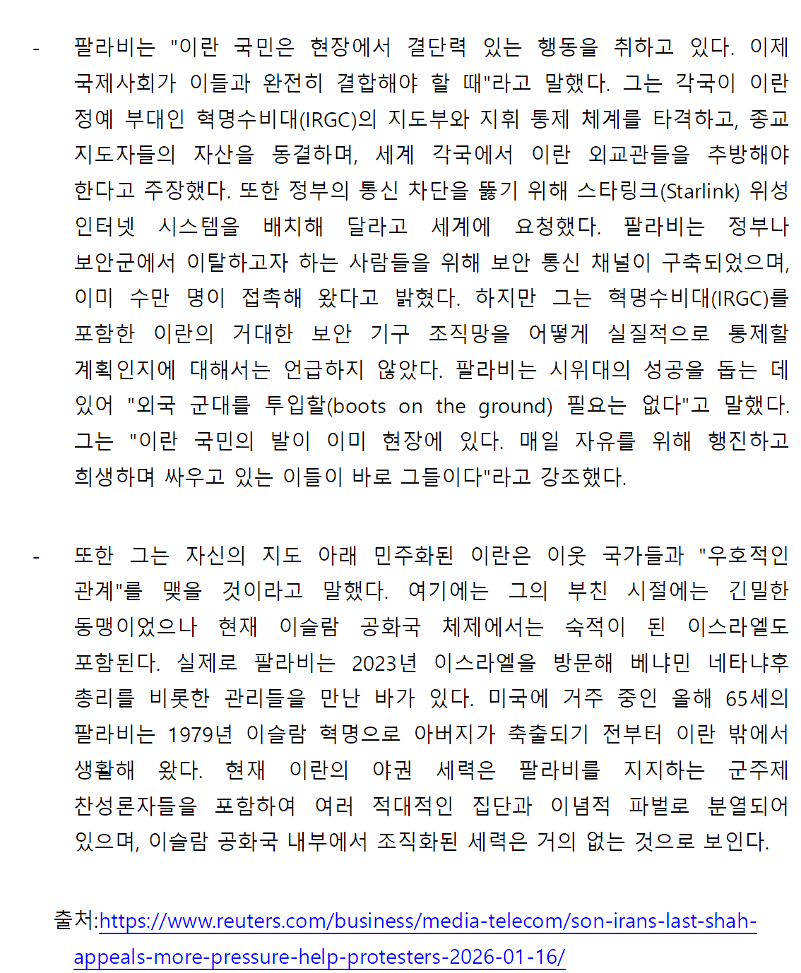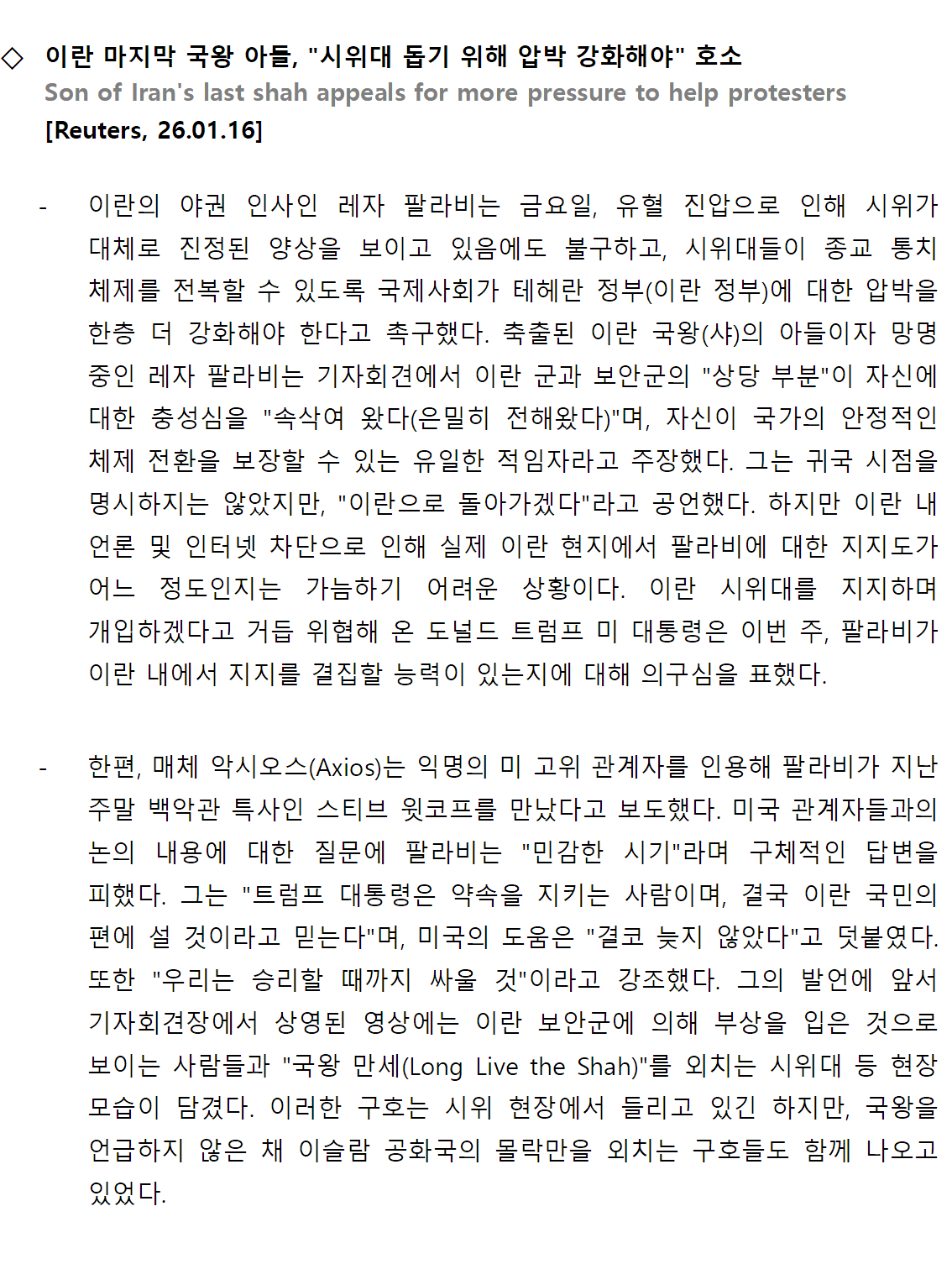 [외신] 한국-이란협회 뉴스레터 [26.01.12 ~ 26.01.18]