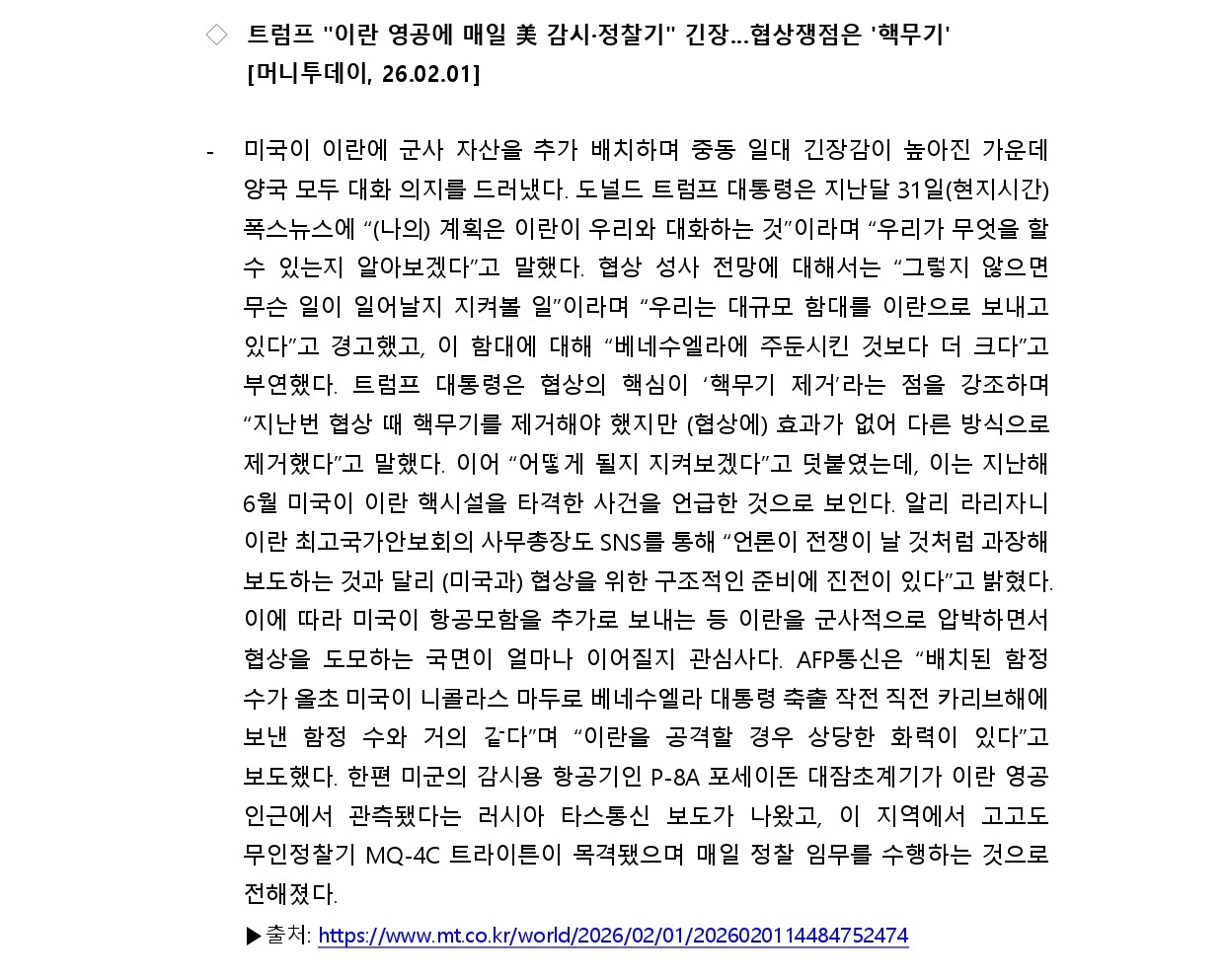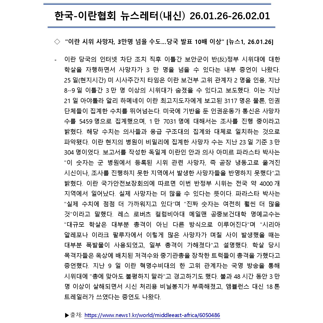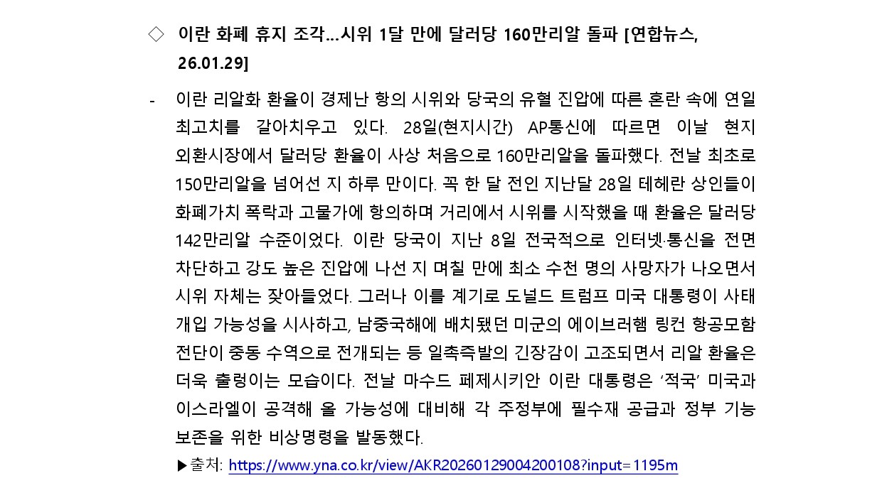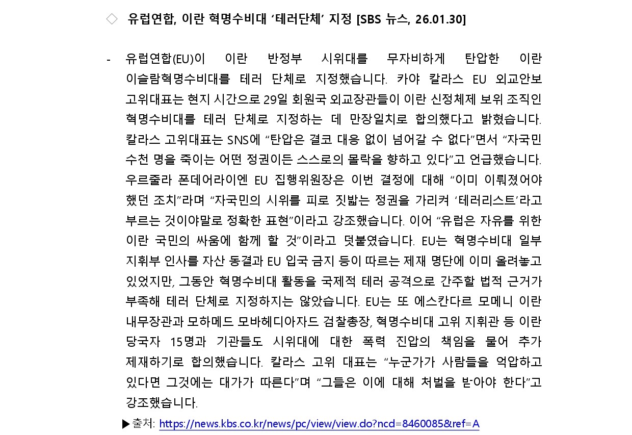 [내신] 한국-이란협회 뉴스레터 [26.01.26 ~ 26.02.01]
