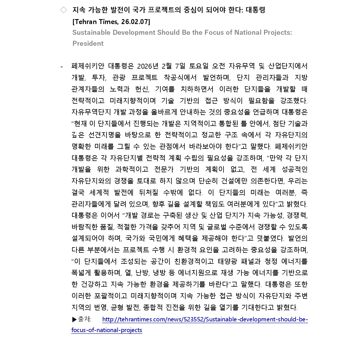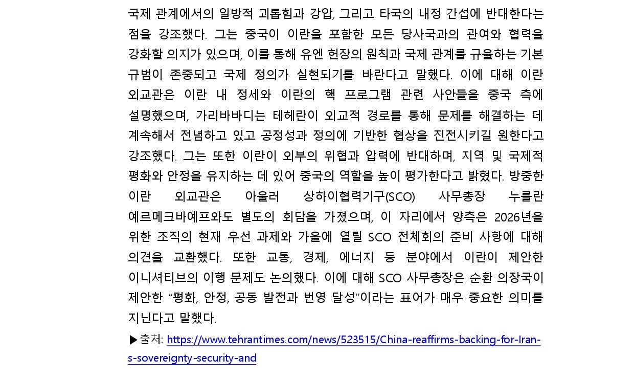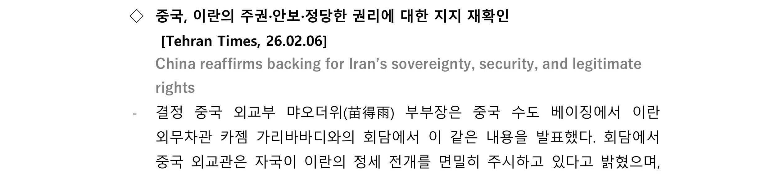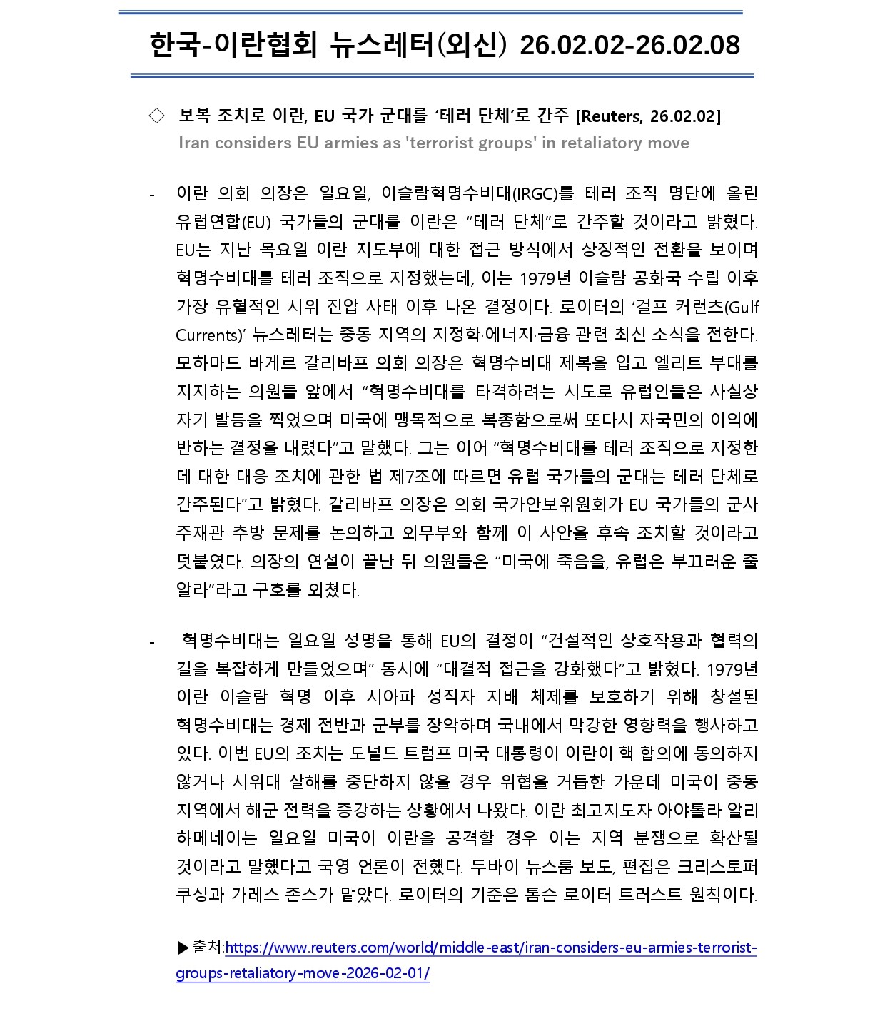 [외신] 한국-이란협회 뉴스레터 [26.02.02 ~ 26.02.08]