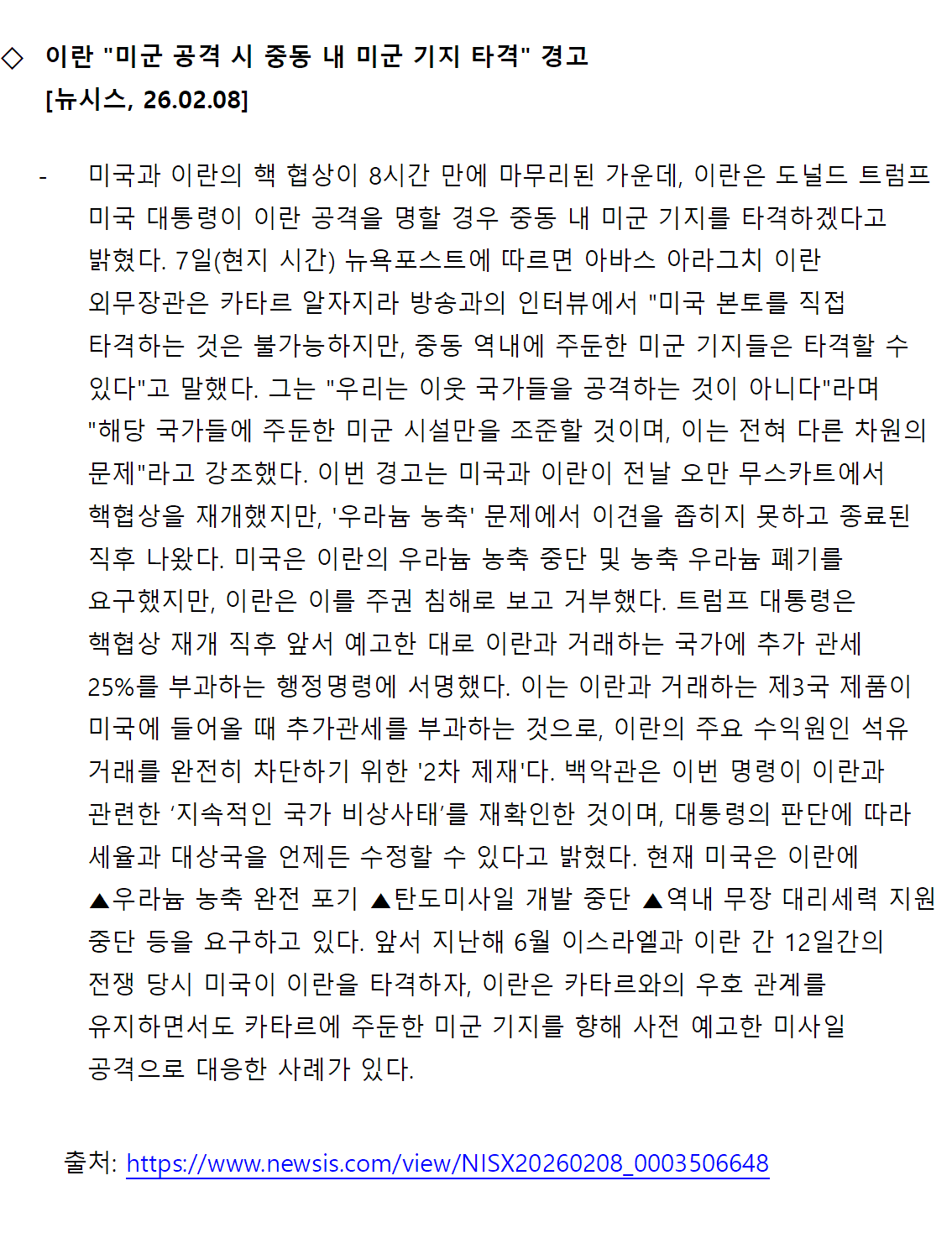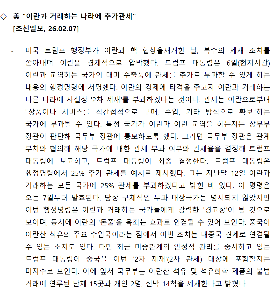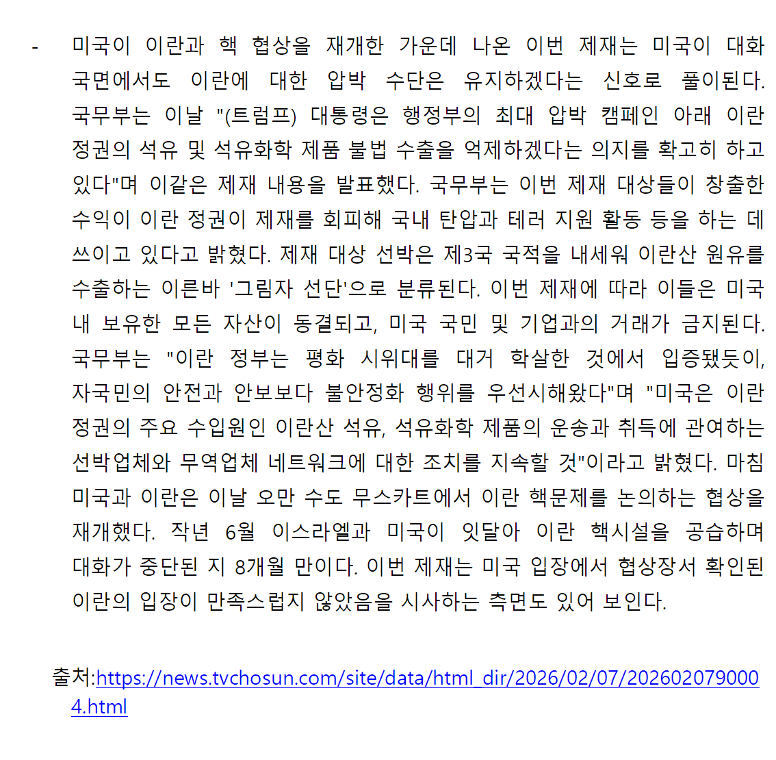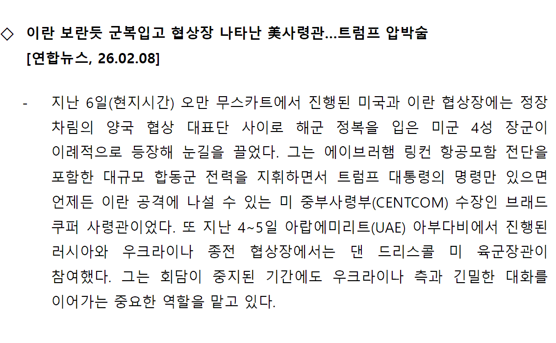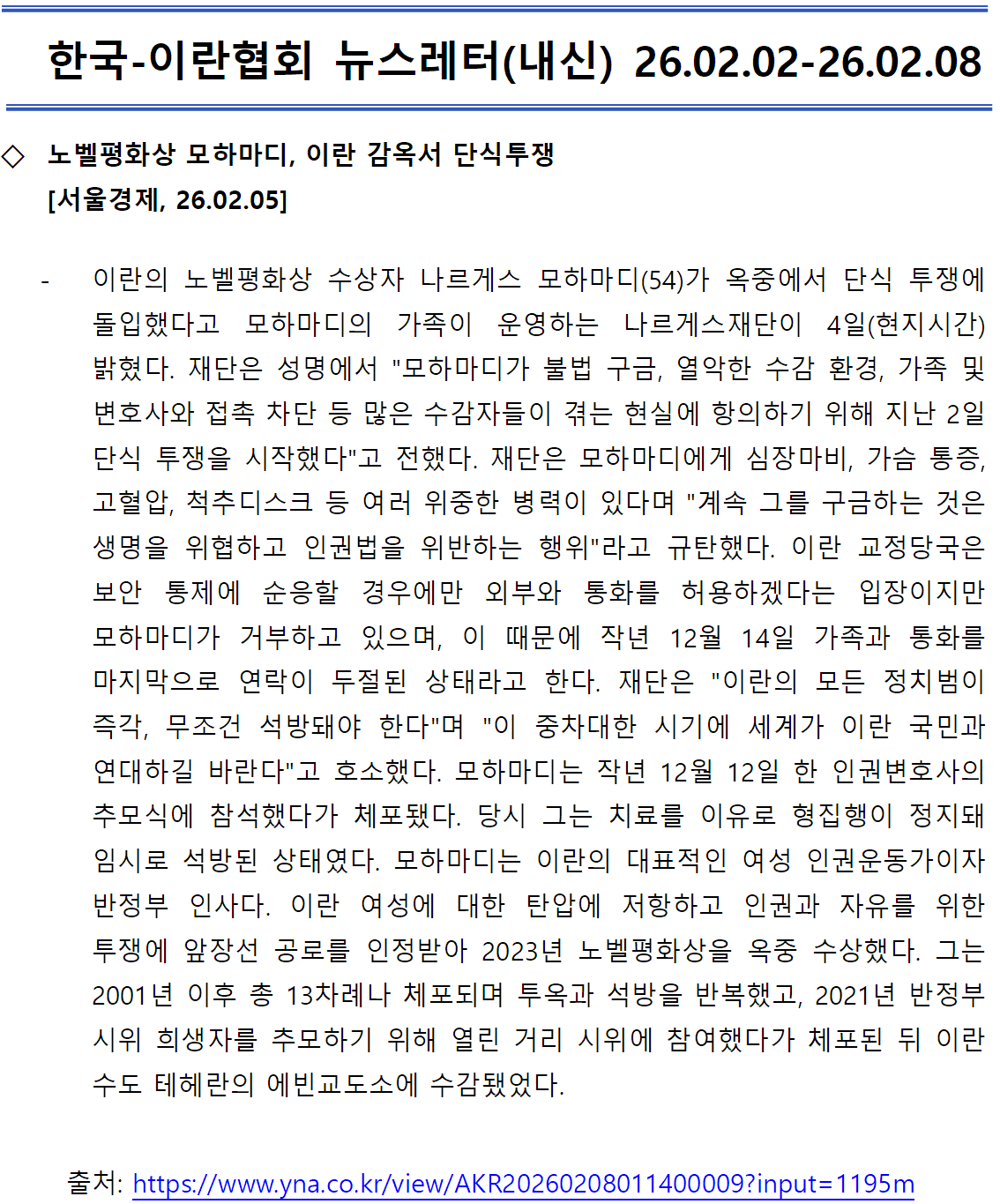 [내신] 한국-이란협회 뉴스레터 [26.02.02 ~ 26.02.08]